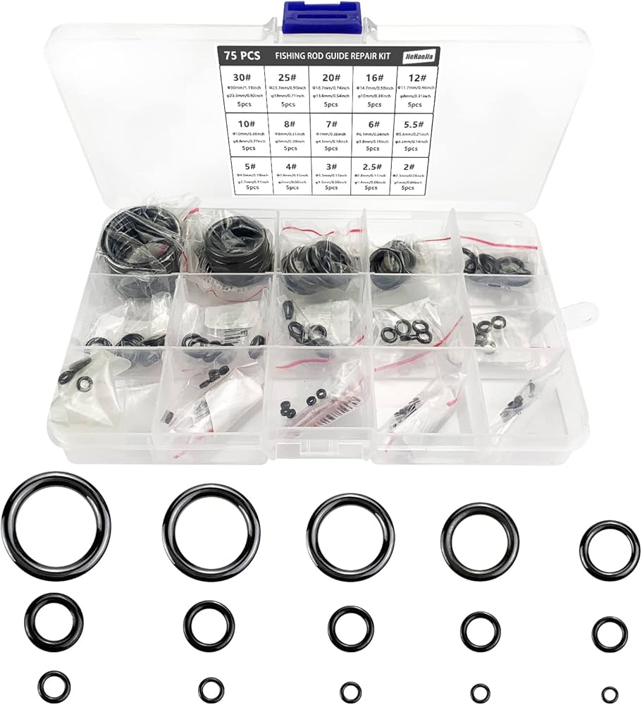 Jiehaojia 75 Pezzi 15 Dimensioni Da 2# A 30# Anello Di Guida In Ceramica Anelli Canna Da Pesca Di Riparazione Kit,per Le Canne Da Pesca D'Acqua Dolce E D'Acqua Di Mare