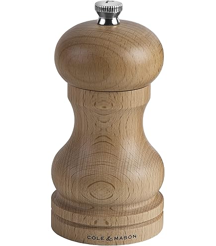 Salt And Pepper Grinders Cole & Mason HB1244P Forest Capstan Pepper Mill, Precision+ Wooden Sea Salt Una versione moderna del classico mulino per cabestani, realizzato con faggio di alta qualità proveniente da fonti sostenibili, questo macina pepe aggiunge stile a qualsiasi tavola pur rimanendo uno strumento da cucina quotidiano. Cole & Mason HB0644P Forest Capstan Macina Pepe, Legno Scuro, Precision+, Macinatura Regolabile, Legno di Faggio Tinto, 165mm, Include 1 x Mulino Con meccanismi di precisione di Cole & Mason; acciaio al carbonio per pepe che spoglia i grani di pepe invece di schiacciarli e ceramica affilata per il sale, garantendo il massimo rilascio di sapore da ogni turno. Si consiglia di non utilizzare prodotti per la pulizia in quanto ciò potrebbe influire sulla finitura del prodotto. Non immergere in acqua o mettere in lavastoviglie. Per pulire, strofinare con un panno umido e utilizzare un panno pulito per asciugare. I mulini Precision+ Range sono dotati di un meccanismo a molla, che consente una macinatura completamente regolabile da sottile a grossolana.
