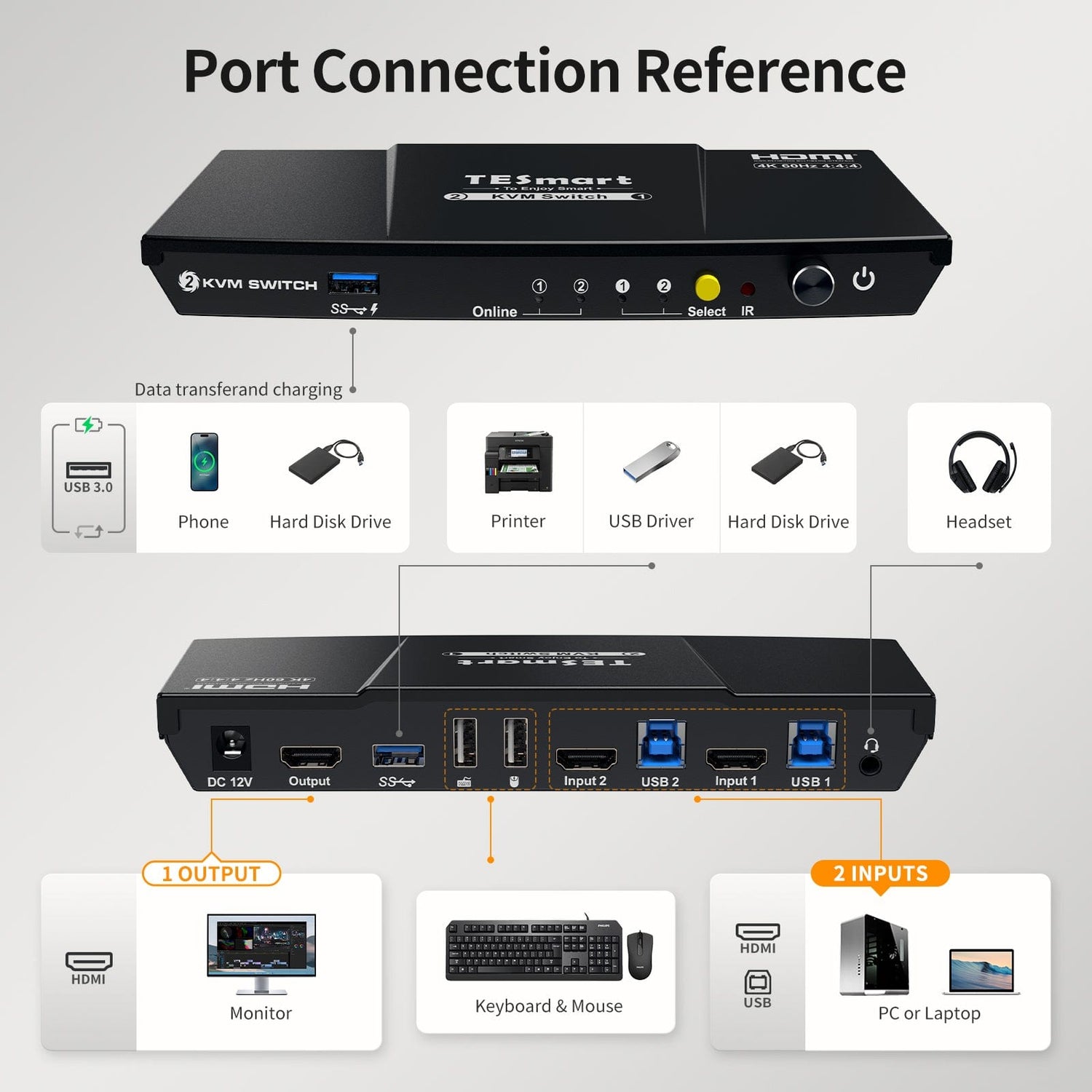 Cable Matters USB 3.0 KVM HDMI Switch For 2 Computers With 4K@60Hz HDMI