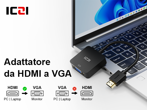 È sufficiente collegare il dispositivo sorgente HDMI a uno schermo VGA tramite questo adattatore per visualizzare facilmente il segnale HDMI su uno schermo VGA È sufficiente collegarlo e iniziare subito a lavorare. Questo adattatore è stato progettato specificamente per fornire una connessione affidabile e di alta qualità tra i moderni dispositivi HDMI e i vecchi schermi VGA. Grazie a un chip appositamente sviluppato da , questo adattatore offre una migliore stabilità del segnale, garantendo un'immagine più chiara e stabile. Facile da usare grazie al Plug & Play: non richiede l'installazione di driver o software. Ampia compatibilità con numerosi dispositivi: L'adattatore da HDMI a VGA è versatile e adatto a PC, laptop, ultrabook, notebook Chromebook, Raspberry Pi, Intel NUC e console di gioco come PS3, Xbox One e Wii U Chip migliorato per una stabilità ottimale: dotato di un chip avanzato, questo adattatore da HDMI a VGA offre una migliore trasmissione del segnale per un'immagine più chiara e stabile rispetto ad altri adattatori presenti sul mercato Efficiente dissipazione del calore per una maggiore durata: l'adattatore è realizzato con un robusto guscio in plastica ABS che non solo è resistente agli urti e all'usura, ma favorisce anche una rapida dissipazione del calore. Investite nel nostro adattatore da HDMI a VGA e sperimentate un trasferimento continuo e di alta qualità dei segnali HDMI ai dispositivi VGA. Cavo Hdmi A Vga Atlantis A04-HDMI_VGA Adattatore Da HDMI A VGA (D-SUB), 1080p 60Hz, Porta Audio Da 3,5mm, Per PC Cavo Vga Ideale per l'uso professionale e domestico, questo adattatore offre una soluzione affidabile per colmare il divario tra le nuove e le vecchie tecnologie. Questo convertitore da HDMI a VGA supporta risoluzioni elevate fino a 1080p Full HD, offrendo un'eccellente qualità dell'immagine.
