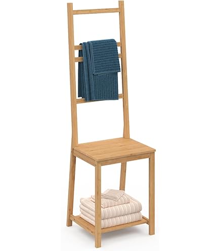 Porta abiti/asciugamani modello sedia in robusto bambù 3 Sbarre e 2 ripiani Materiale resistente all'umidità Perfetto in bagno Grazie alla sua doppia funzione di appendiabiti e porta asciugamani, questa sedia da bagno è proprio quello che state cercando! I 2 ampi ripiani del servomuto sono ideali per riporre scarpe, vestiti o asciugamani, mentre le 3 barre sono ottime per appende Sgabello Doccia Relaxdays Sedia Portasciugamani In Bambù, HLP 133 X 40 X 42 Cm, Bagno E Camera Da Letto, Omino Servomuto, Marrone Scuro | Leroy Merlin Sedia Portasciugamani Amazon
