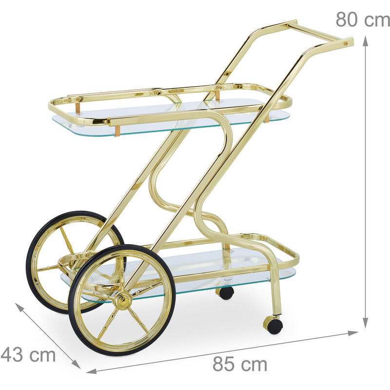 Relaxdays Carrello Da Cucina, 2 Ripiani, HLP: 79x45x65,5 Cm, Vetro E Metallo, Carrellino Ovale Con Rotelle, Ottone