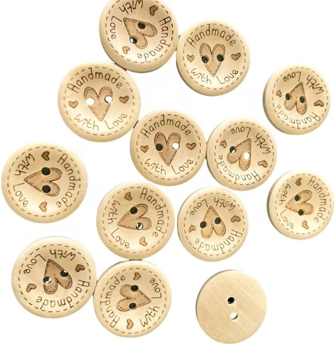 FEPITO Handmade With Love Bottone In Legno 15mm 20mm