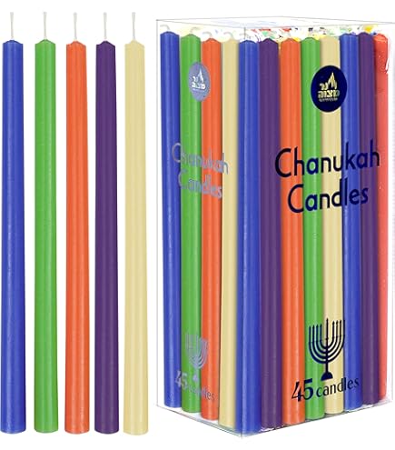 Candele Hanukkah Rimmon Judaica 44 Candele Tradizionali Hanukkah – Abbastanza Per Tutte Le 8 Notti – Dimensioni Standard Per La Maggior Parte Delle Menorah, Multicolore Colorante Per Candele Avviso di sicurezza Tenere le candele lontano da materiali infiammabili, non lasciare una candela accesa incustodita, monitorare il tempo di combustione e smaltire correttamente i resti di candela. Candele Chanukah colorate, 0,9 cm x 10 cm, dimensioni standard per la maggior parte delle menorah, 44 pezzi per tutte le 8 notti di Hanukkah, colori assortiti, cera di qualità AR Candles Queste candele sono solo per uso interno. - Un must per ogni casa ebraica, le nostre candele AR attirano tradizione e stile, poiché brucia ben oltre i 30 minuti richiesti. - Le nostre candele sono tutte standard 2,2/10 cm, facilmente inseribili in ogni tipo di menorah. Solo perché eccelliamo nel fornire quantità non significa che trascuriamo la qualità. - Illumina le notti più buie con stile utilizzando il nostro divertente assortimento di candele chanuka multicolore.