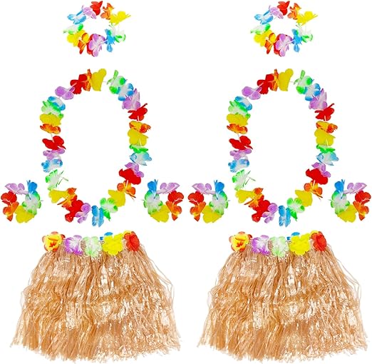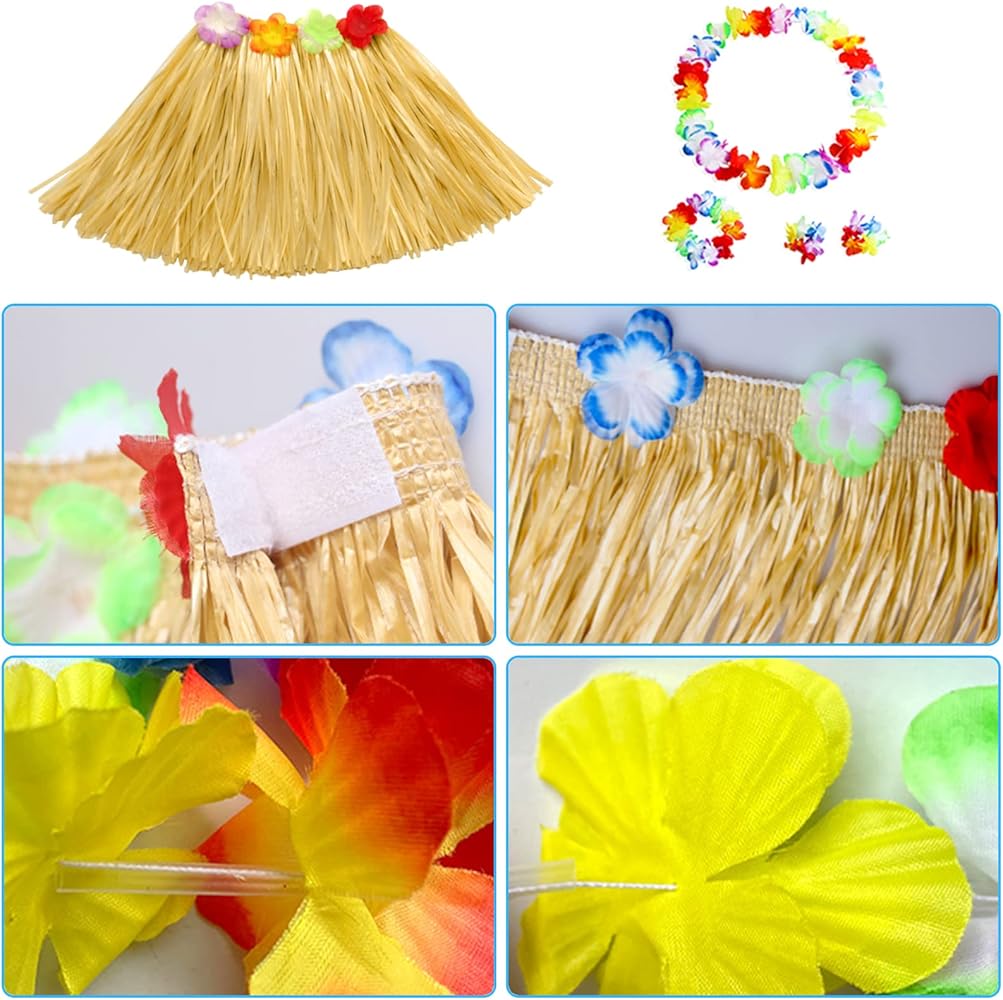 Set Di 10 Pezzi Con Gonna In Erba Hawaiana, Gonne In Erba Hawaiana, Ghirlande Di Fiori, Braccialetto, Fascia Per Bambini, Forniture Per Feste Estive, Spiaggia, Feste Tropicali, Multicolore, Taglia