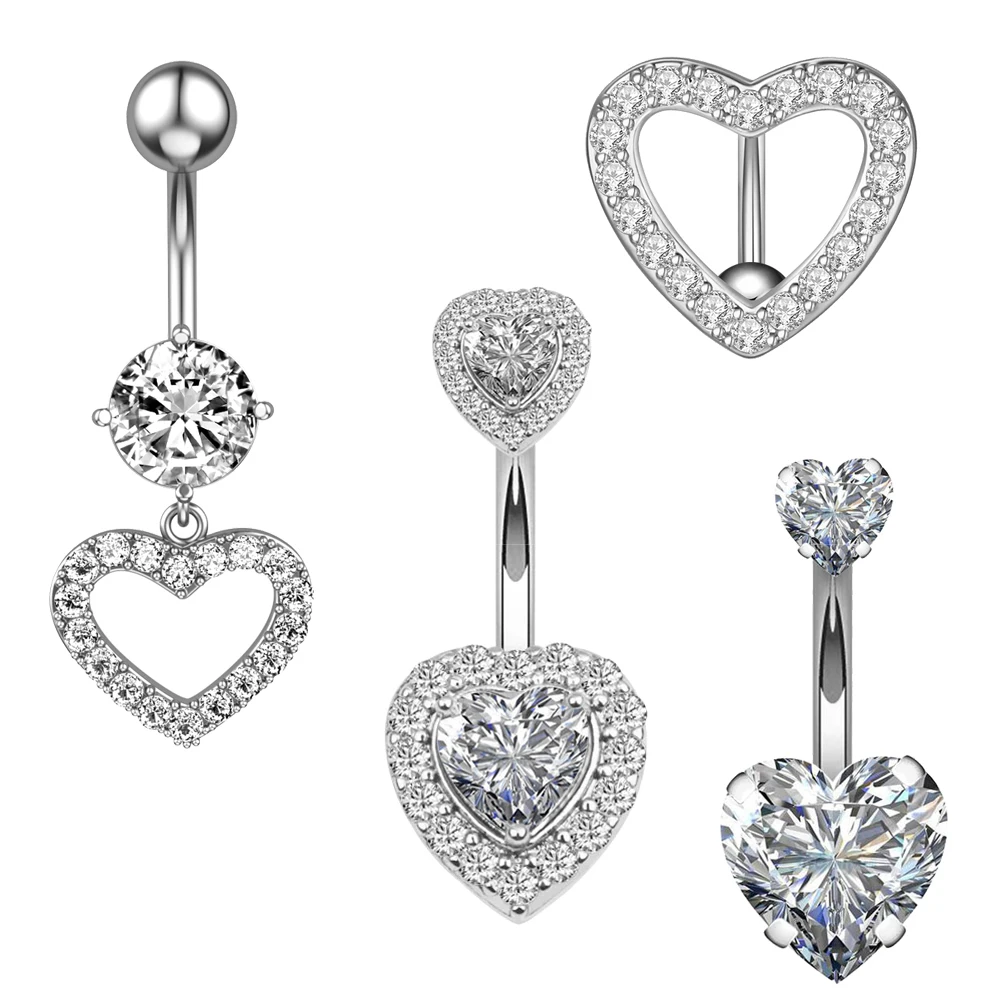 Women's 14G CZ Heart Butterfly Dangle Navel Piercing Ring