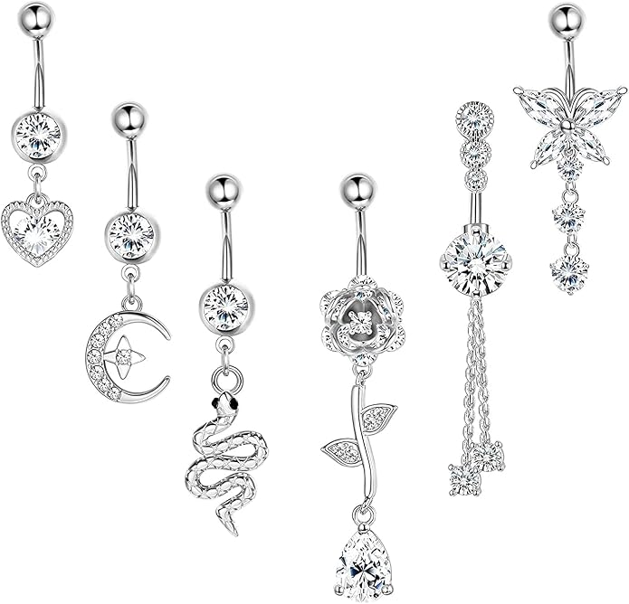 Con il design a vite, il piercing all'ombelico è facile da togliere o affrontare, non facile da cadere. ❤Anelli❤dell'ombelico un ordine viene fornito con 10Pcs diversi stili anelli dell'ombelico, includono anelli dell'ombelico del cuore, anelli dell'ombelico della farfalla, anelli del bottone della pietra di luna, bilanciere ombelico curvo, Anelli ombelico CZ trasparenti, anello dell'ombelico pendente lungo e anello dell'ombelico inverso, piercing alla pancia diversi ti incontrano per abbinare vestiti diversi Kakonia Jewellery--It is a good choice to brighten up your life. Kakonia 14G Belly Button Rings Heart Snake Butterfly CZ Belly Button Rings Dangling Navel Rings For Women Cute Rose Gold Plated Belly Button Piercing Pack We adhere to the customer first p Piercing Ombelico Oro Women's 14G CZ Heart Butterfly Dangle Navel Piercing Ring Belly Bar Piercing Jewelry L'anello dell'ombelico con lucidatura CZ non è solo comodo da indossare, ma anche molto alla moda ❤MIGLIOR SERVIZIO: MILACOLATO Jewellery può fornire una garanzia di cambio o rimborso di 365 giorni e un'eccellente consulenza pre-vendita e servizio clienti post-vendita ❤Design dell'anello dell'ombelico Questi simpatici anelli dell'ombelico❤con spessore della barra standard: 14G = 1,6 mm, lunghezza disponibile: 10 mm. ❤Accessori❤estivi Questi anelli ombelici lucidi e belli per le donne sono unici e possono essere utilizzati come miglior regalo per le donne, la tua amata, figlia, amiche, al fine di abbinare costume da bagno, Bikini, top estivi, abito lungo da spiaggia, minigonna da discoteca. Paese di origine : Cina