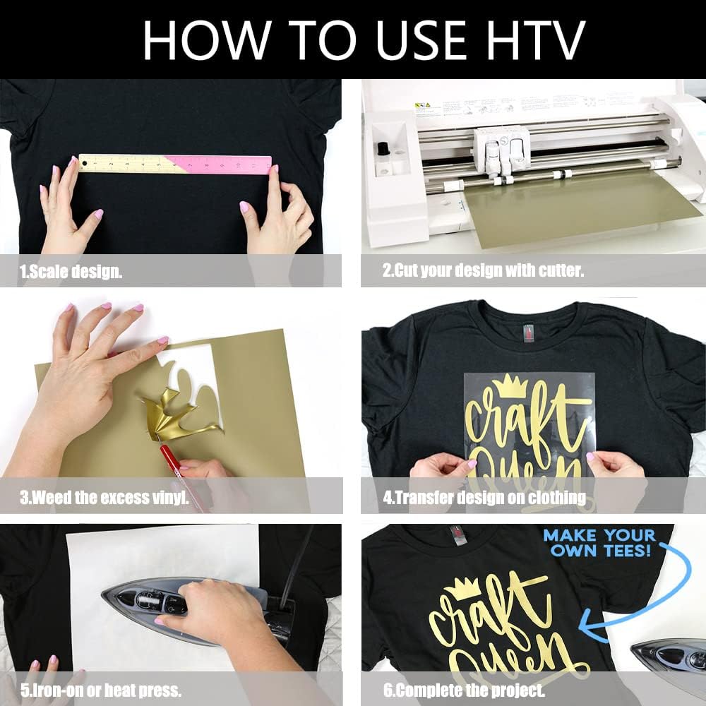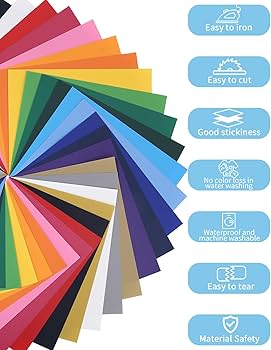 Heinaroman 45 Fogli Vinile Termoadesivo Per Tessuti - 30,5cm X 25cm Termovinile Per Tessuti Per Rilievo Di Taglio E Contorno, Vinile HTV Per T-Shirt Abbigliamento, Facile Da Tagliare E Diserbare