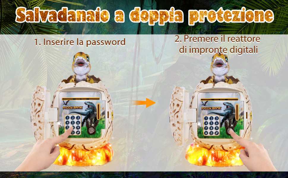 Lampada proiettore salvadanaio per bambini: premere il pulsante Indietro verso sinistra per accendere la proiezione della lampada da scrivania e ruotare il pulsante Indietro verso destra per accendere la proiezione della lampada da scrivania.1. inserire la password corrente e aprire la porta2. tenere premuto il tasto *3. inserire quattro nuove password entro 10 secondi e premere # per confermare4. rilasciare il pulsante * e chiudere la porta, quindi la password cambierà 【Regalo ideale per i bambini】 Favolosi bambini sicuri, regali ideali per i bambini per iniziare a imparare il valore del risparmio di denaro in giovane età. 【Salvadanaio a forma di uovo di dinosauro】 Novità nel design dell'uovo di Razzo. Salvadanaio Bambini , Salvadanaio Elettronico per Bambini , Cassaforte per Bambini con Codice di Sicurezza Musica e Luce, Bambini 3-12 Regali di Natale per Ragazzi Ragazze(blu I bambini sono più inclini a risparmiare quando hanno questo divertente salvadanaio. Descrizione prodotto Salvadanaio a forma di razzo per bambini, un modo divertente ed educativo per insegnare ai bambini a risparmiare denaro. Salvadanaio Bambino Highttoy Salvadanaio Bambini, Salvadanaio Elettronico Con Combinazione Giochi Bambini 3-12 Anni Regalo Bancomat Salvadanaio ATM Per Bambini Bambina Bluverde : Amazon.it: Casa E Cucina Salvadanaio Bambina Premere un numero qualsiasi per cambiare musica in modalità musicale (il salvadanaio necessita di 3 batterie AA, confezione non inclusa). 【Salvadanaio elettronico】 Inserendo correttamente la password di 4 cifre e toccando l'impronta digitale simulata per confermare, il salvadanaio si apre. Accontenta facilmente tutti i fan dei Razzo! 【Salvadanaio musicale】 Premere # per passare dalla modalità password alla modalità musica. Per modificare facilmente la password, consultare il manuale (password iniziale: 0000).