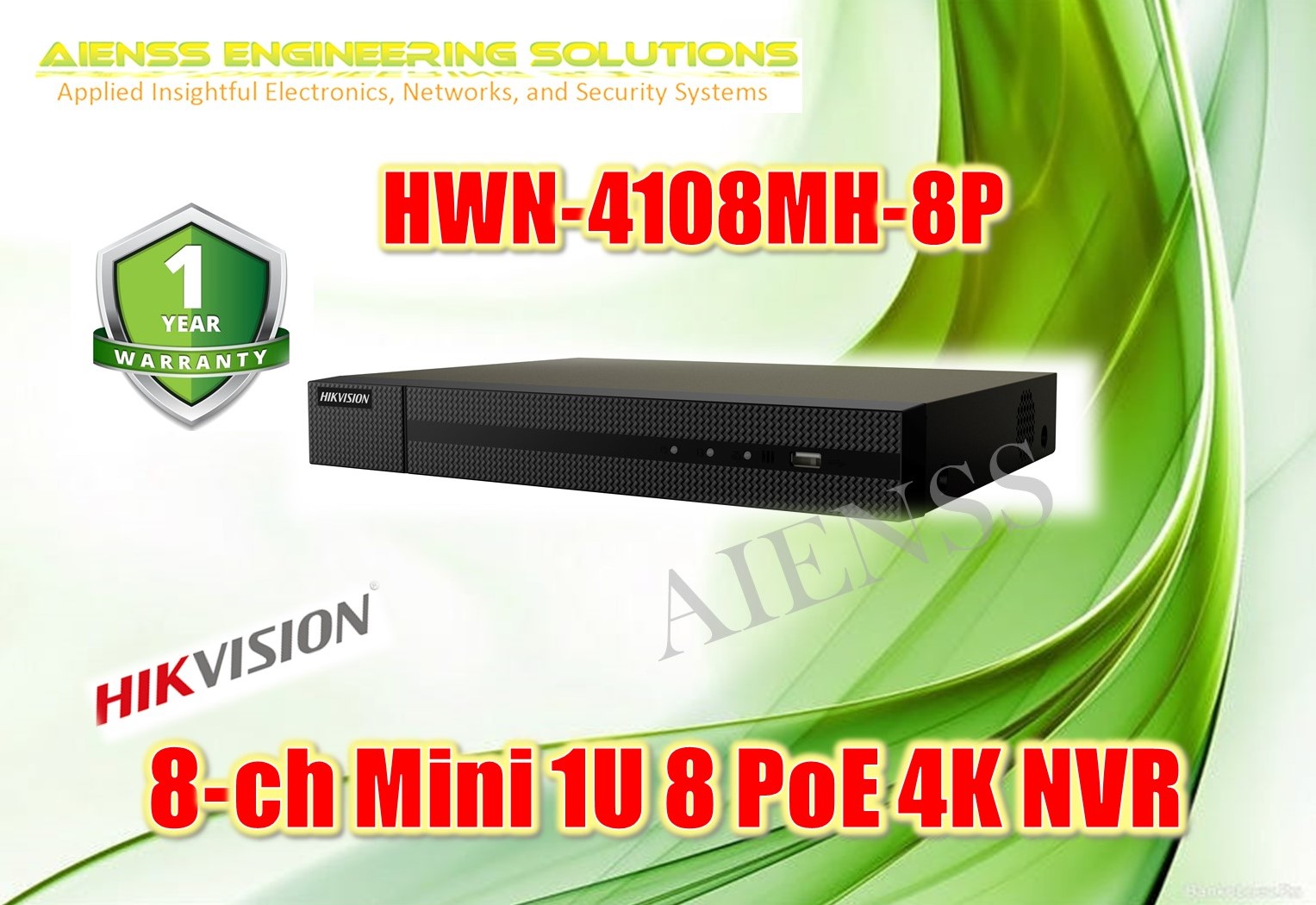 Hikvision HWN-4108MH Hiwatch Series Nvr 4K Hd 8ch 8mpx H.265+8