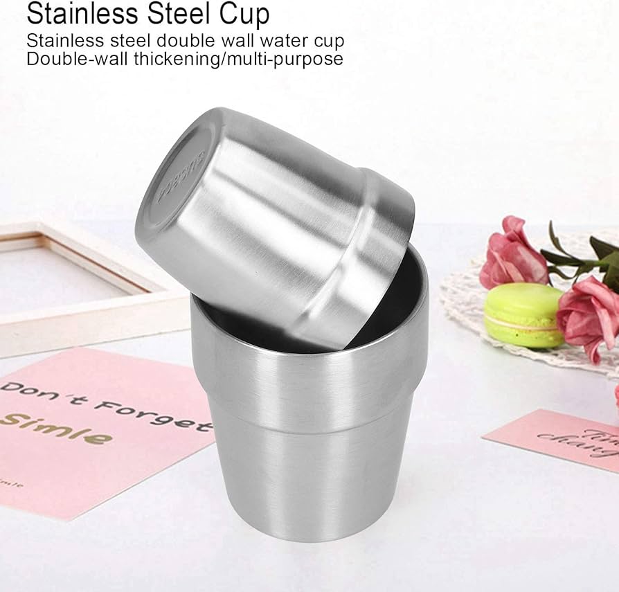 Hivexagon Tazzine Da Caffè Acciaio Inossidabile 300ml Set Di 8 Tazze A Doppia Parete In Acciaio