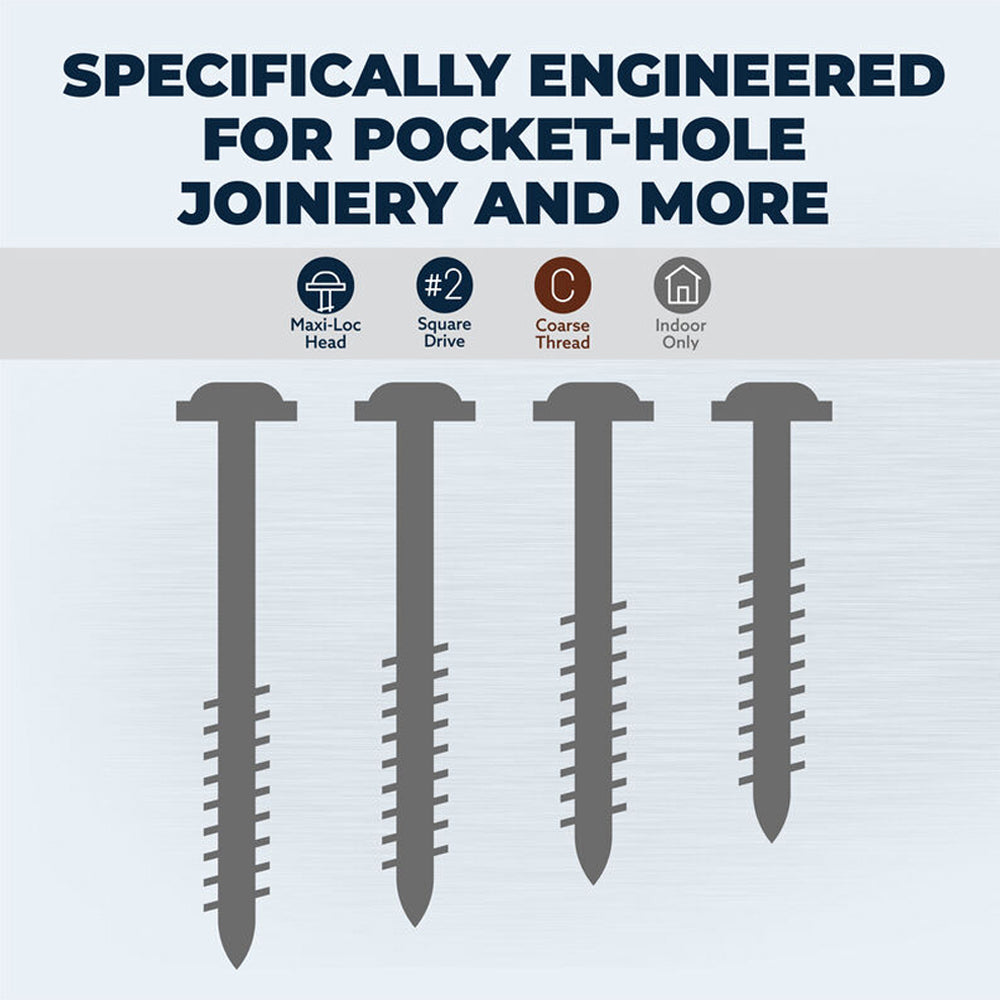 Kreg Pocket-Hole Screws 38 Mm, Stainless Steel, Maxi-Loc, Coarse Thread, 100 Piece