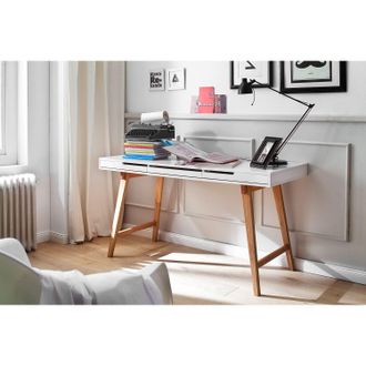 Homfa Scrivania Tavolo Ufficio Lavoro Scaffale Porta Computer Con 2 Cassetti Tavolino Per Toeletta Pranzo Legno Moderno Bianco