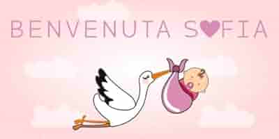 STRISCIONE FONDALE - BENVENUTA CICOGNA - IN CARTA O IN BANNER PVC ANCHE DA ESTERNO GARANZIA 5 ANNI (400X100, BANNER
