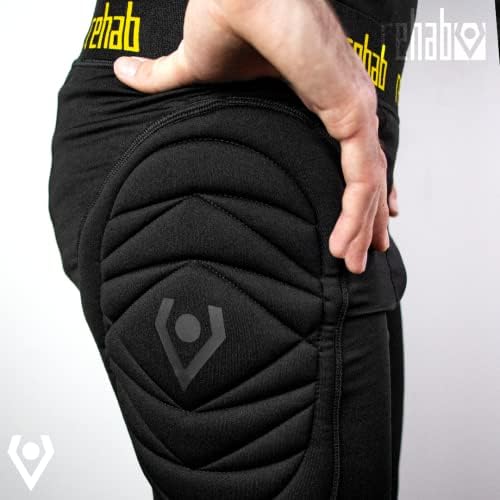 Rehab Pantaloni Lunghi Da Portiere Neri – Mutande Professionali Imbottite Per Adulti (taglia 128-XXL) – Protezione Traspirante Per Allenamento E Gioco, Nero/verde, 10 Anni