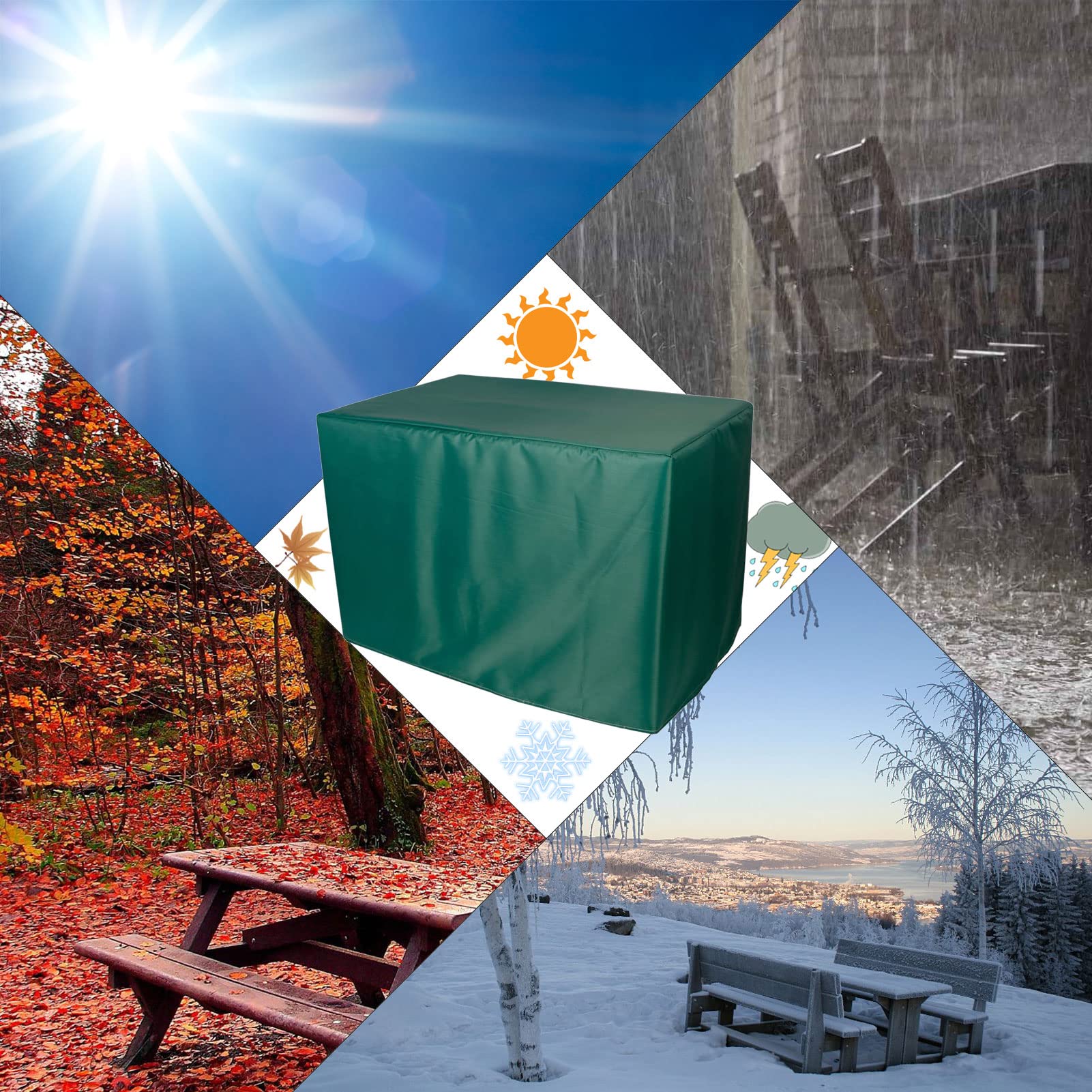 La chiusura con coulisse inferiore aiuta a fissare il coperchio. Impermeabile: le coperture dei mobili da giardino sono rivestite con rivestimento in PU, che le rende impermeabili. Copertura per set di mobili 50x50x50cm, copertura per mobili da giardino , impermeabile , copertura per tavolo da giardino , rettangolare , copertura protettiva per mobili da giardino , tessuto O Copertura Mobili Da Giardino Dreamsdox Copertura Tavolo Giardino Impermeabile Telo Protettivo Per Tavolo, Anti Vento Sole Coperture Impermeabili Per Mobili Premium e durevole: la grande copertura per tavolo da patio impermeabile è realizzata in resistente tessuto Oxford, il materiale è ad alta densità e resistente all'usura, questa copertura per mobili da esterno è resistente alla polvere, alla pioggia e alla neve. Si prega di misurare le dimensioni del set di mobili prima dell'acquisto. Antivento: il copridivano da esterno adotta un design impermeabile su entrambi i lati, con materiale oxford impermeabile all'esterno e rivestimento impermeabile in PU sul retro. Misura universale: si adatta alla maggior parte dei mobili come tavolini, panche, tavolini, sedie, tavoli da pranzo da patio, sedie da 8-12 o copridivani da 6-8 posti. Le coperture per mobili da giardino sono realizzate in oxford 420D con un supporto protettivo impermeabile, forte impermeabilità e resistenza al vento.