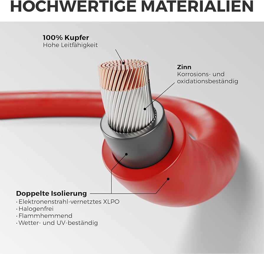 Un set è composto da due cavi, i due cavi sono assemblati una volta ciascuno con spina a presa. Numero modello: MK6187 // Marca: deleyCON I connettori PV4, compatibili con MC4 (Multi Contact), sono lo standard per gli impianti fotovoltaici. )- Resistenza di contatto: = 0,25 mOhm- Corrente nominale (IEC 62852 a 85 °C): 4,0 mm² (12AWG) 35 A- Tensione nominale a impulso: 16 kV- Temperatura ambiente: da - 40 °C a +90 °CCavo- Numero di conduttori: 1- Sezione del conduttore: 4,0 mm²- Materiale del conduttore: rame stagnato- Tipo di anima: a trefoli (stranded)- Numero di isolanti: 2- Materiale dell'isolante: XLPO reticolato a fascio di elettroni (senza alogeni)- Raggio minimo di curvatura (statico): 4 x OD- Raggio minimo di curvatura (dinamico): 5 x OD- Tensione nominale: AC U0/U = 1 kV, DC 1,5 kV (max. cavo solare deleyCON 4,0 mm² con PV4Set di cavi di prolunga solari per il cablaggio seriale e parallelo di impianti fotovoltaici. Cavo Fotovoltaico 6 Mmq DeleyCON 1m PV4 Set Di Cavo Prolunghe 4mm² Per Impianti Fotovoltaici - Cablaggio Seriale E Parallelo - 1kV AC 1,5kV DC - Resistente Agli Agenti Atmosferici E Ai Raggi UV IP68 Deleycon Deutschland INSTALLAZIONE FACILE: cavo rotondo flessibile con raggio di curvatura minimo, elevata capacità di trasporto di corrente e grado di protezione IP68. DESTINAZIONE DELLA CONSEGNA: 2x prolunga per cavo solare 4mm² con PV4 // Lunghezza: 2 metri // Colore: 1x rosso e 1x nero +120 °C- Temperatura di stoccaggio: max. +45 °C Spina/presa- Connessioni: Spina PV4 a presa PV4- Connessione a spina: Ø 4 mm- Materiale dei contatti: rame stagnato- Design dei contatti: spina maschio / presa maschio, contatto singolo- Processo di produzione dei contatti: tornitura- Tipo di montaggio: Crimpato- Sistema di connessione: tipo di chiusura NEC- Materiale isolante: PPO- Sistema di chiusura: a scatto- Categoria di sovratensione: CAT II- Grado di inquinamento: 2- Classe di protezione: 2- Classe di protezione (accoppiato): IP68, 1 m / 1h- Classe di fiamma: UL94 V- 0- Tensione nominale: 1500 Volt DC- Tensione di prova: 6 kV (50 Hz, 1 min. LUNGA DURATA: I contatti in rame stagnato e l'isolamento in XLPO senza alogeni garantiscono robustezza e durata. SET COMPLETO: Il cavo solare deleyCON da 4,0 mm² con PV4 contiene due cavi, ciascuno dei quali è dotato di una spina PV4 e di una presa.
