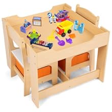 Le sedie possono sostenere un peso di 40 kg. Oltre a questo, il piano del tavolo si usa anche come una lavagna cancellabile e lavabile, i bambini scrivono ed imparano con gioia. GOPLUS Set Tavolo e 2 Sedie Bambini, 3 in 1 Piano Bianco/Nero, Multifunzione come Scrivania/Lavagna/Portagiocchi, Sedie con Contentitore, Portata di 2x50kg + 25kg, Beige Seggiolone Pappa Portatile GOPLUS Set Tavolo E 2 Sedie Bambini, 3 In 1 Piano Bianco/Nero, Multifunzione Come Scrivania/Lavagna/Portagiocchi, Sedie Con Contentitore, Portata Di 2x50kg + 25kg, Beige Tavolo E Sedie Bambini Adatto a bambini dai 2 ai 6 anni (a seconda dell'altezza) Buona stabilità: Il supporto di sedie e tavolo è realizzato a forma di Lettera I, In conformità con le leggi dell'ingegneria, garantisce un’ottima stabilità Ottima capacità di carico: Grazie alla sua alta qualità ed ai suoi materiali in legno, il set ha un’elevata capacità di carico. (Dimensioni Tavolo: 60x60x48cm) Tavolo & Sedie: Il set da tavolo è dotato di un tavolo e 2 sedie, con un coperchio removibile, perfetto per l’uso dei bambini per fare i compiti o mangiare.