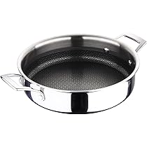MasterPro HI-TECH 3 Una collezione di strumenti di cottura multistrato dalle performance superiori per un’esperienza unica in cucina. 2 ALLUMINIO • Trasmissione rapida del calore La combinazione dell’acciaio inox con l’alluminio ottimizza la conduzione e la distribuzione del calore, a vantaggio del risparmio di energia, e regala cotture che preservano i valori nutrizionali e i sapori degli alimenti Elegante manico ergonomico a sezione cava in acciaio inox con tecnologia “stay-cool”: rimane freddo anche mentre si cucina, per operare senza pensieri e in totale sicurezza e senza rischio di scottature Manigliame tecnologia “stay cool” per cucinare in sicurezza e senza pensieri Sistema antiaderente PPG ETERNA a tre strati in abbinamento al sistema a rete della “ETCHING TECHNOLOGY” si distingue per una straordinaria durezza, un’ottima resistenza ai graffi e un’eccellente resistenza all’abrasione, prolungando la vita del prodotto Lo speciale corpo in trilaminato, composto da acciaio e alluminio, ottimizza la conduzione termica, a tutto vantaggio del risparmio di energia. Si adatta a tutti i piani cottura, inclusa l’induzione, dove dà il meglio di sé grazie alla tecnologia 360° Full Induction. SET 2 PADELLE 20/24cm + WOK 28cm Combinazione di tre strati di Acciaio+Alluminio+Acciaio: igiene, risparmio di energia e cotture sempre a puntino, senza il rischio di bruciare gli alimenti; 3 volte più veloce a riscaldarsi rispetto ai tradizionali strumenti in acciaio. Fondo 360° full induction: più stabile e più veloce sull’induzione rispetto ai comuni utensili a induzione e su tutti gli altri piani cottura Resistente alla lavastoviglie, è garantita per 10 anni Fondo 360° full induction (induzione sul 100% della base): più stabile e più veloce sull’induzione rispetto ai comuni utensili a induzione e su tutti gli altri piani cottura Resistente alla lavastoviglie e garantita 10 anni MasterPRO Giro 3 | Set di padelle antiaderenti da 20,24 e 28cm | con triplo strato in acciaio inossidabile e alluminio | Set di 3 coltelli intelligenti e protettore per padelle, tutti i tipi di cucine TRIPLO STRATO: le padelle Giro 3 dispongono di u RITI Collezione di padelle multistrato progettata per offrire funzionalità superiori e un’esperienza unica in cucina. Combinazione di tre strati di Acciaio+Alluminio+Acciaio: igiene, risparmio di energia e cotture sempre a puntino, senza il rischio di bruciare gli alimenti Padella Acciaio Inox MasterPro Set 3 Padelle 20+24+28cm Multistrato In Acciaio Antiaderente Per Induzione Con Manico Ergonomico Linea Giro3 Gold Pentole Antiaderente Speciale rivestimento PPG Eterna + Maglia d’acciaio: resiste ai graffi e alle abrasioni, anche quando si usano utensili metallici. Set padelle 20x4,2cm + 24x4,7cm + wok 28x8cm per induzione HI-TECH3 in acciaio Inox 18/10 con fondo Full Induction Lo speciale corpo in trilaminato, composto da acciaio e alluminio, ottimizza la conduzione termica, a tutto vantaggio del risparmio di energia, e regala cotture che preservano i valori nutrizionali e i sapori degli alimenti. TRIPLO STRATO - OTTIMO MANTENIMENTO DEL CALORE La tecnologia ETCHING + ILAG ULTIMATE, grazie all’applicazione del rivestimento su una speciale maglia d’acciaio, rende HI-TECH3 indistruttibile, anche con l’utilizzo di utensili metallici, e resistente alla lavastoviglie.