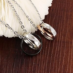 Collane Con Pendente Donna Collana Con Pendente A Cuore In Acciaio Inossidabile Elegante Per Donne - Sintetiche Rosa E Viola, Regalo Bracciali Coppia Buon regalo per Natale / San Valentino Compreso un sacchetto di velluto blu stampata JewelryWe su di esso. Acquista JewelryWe Gioielli Collana con Pendente da Uomo Donna Coppia, Colore Nero & Rose Oro Acciaio Inossidabile, Tre Anelli Ciondolo per Coppia, Catena Lunga 18/20 ( con Regalo Borsa) ✔ spedizione gratuita ✔ resi gratuiti su prodotti idone Catena maschio lunghezza*spessore: 20(50cm)*3mm