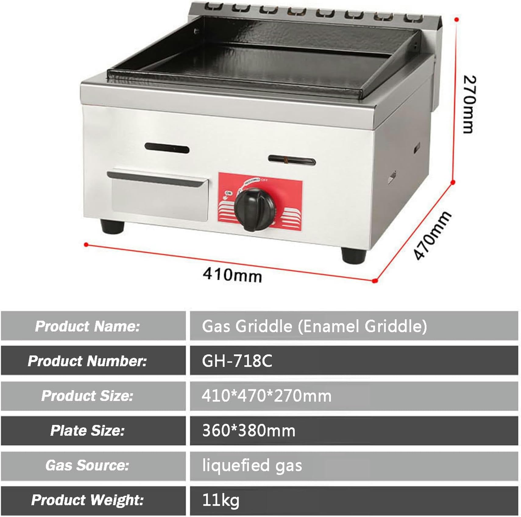 Il suo design multifunzionale è ideale per ristoranti, snack bar, food truck, cucine, campeggio e barbecue. Piastra a gas commerciale GPL in acciaio inox resistente per esterni, antiaderente, piastra piatta per hamburger, bruciatori grandi per cucinare ad alto volume La griglia a gas propano include un sistema di accensione piezoelettrica per un'illuminazione senza sforzo. Caratterizzata da un design portatile e compatto, questa piastra è facile da trasportare e occupa uno spazio minimo per cucinare. I piedini antiscivolo regolabili offrono stabilità e impediscono lo scivolamento durante l'uso. La superficie resistente in acciaio inossidabile consente una rimozione rapida e facile dell'olio. Divertiti a preparare vari piatti all'interno o all'aperto, dove vuoi. Controllo preciso: da 100 °C a 500 °C, il bruciatore controllato offre un'impressionante potenza di cottura di 22.000 BTU, consentendo di regolare facilmente la temperatura da bassa ad alta. Questo design intuitivo rende semplice per chiunque preparare pasti deliziosi, garantendo una cottura uniforme su tutta la superficie della piastra da tavolo. La sua superficie antigraffio è progettata per un uso duraturo. Piastra Acciaio Inox Commerciale GPL In Acciaio Inox Resistente Per Esterni Piastra A Gas Il robusto bruciatore in acciaio inossidabile garantisce affidabilità e non si degraderà come le opzioni in plastica. Sicuro e durevole: realizzato in acciaio inossidabile sicuro e resistente, la superficie piatta garantisce un riscaldamento uniforme per cucinare ad alta temperatura.