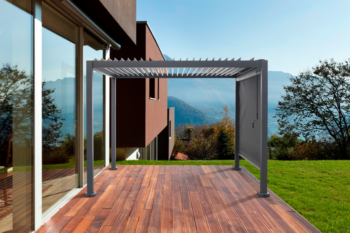 Pergola Pacific 3x3 Bianco In Alluminio Con Tetto Lamellare Orientabile | VitalBrico