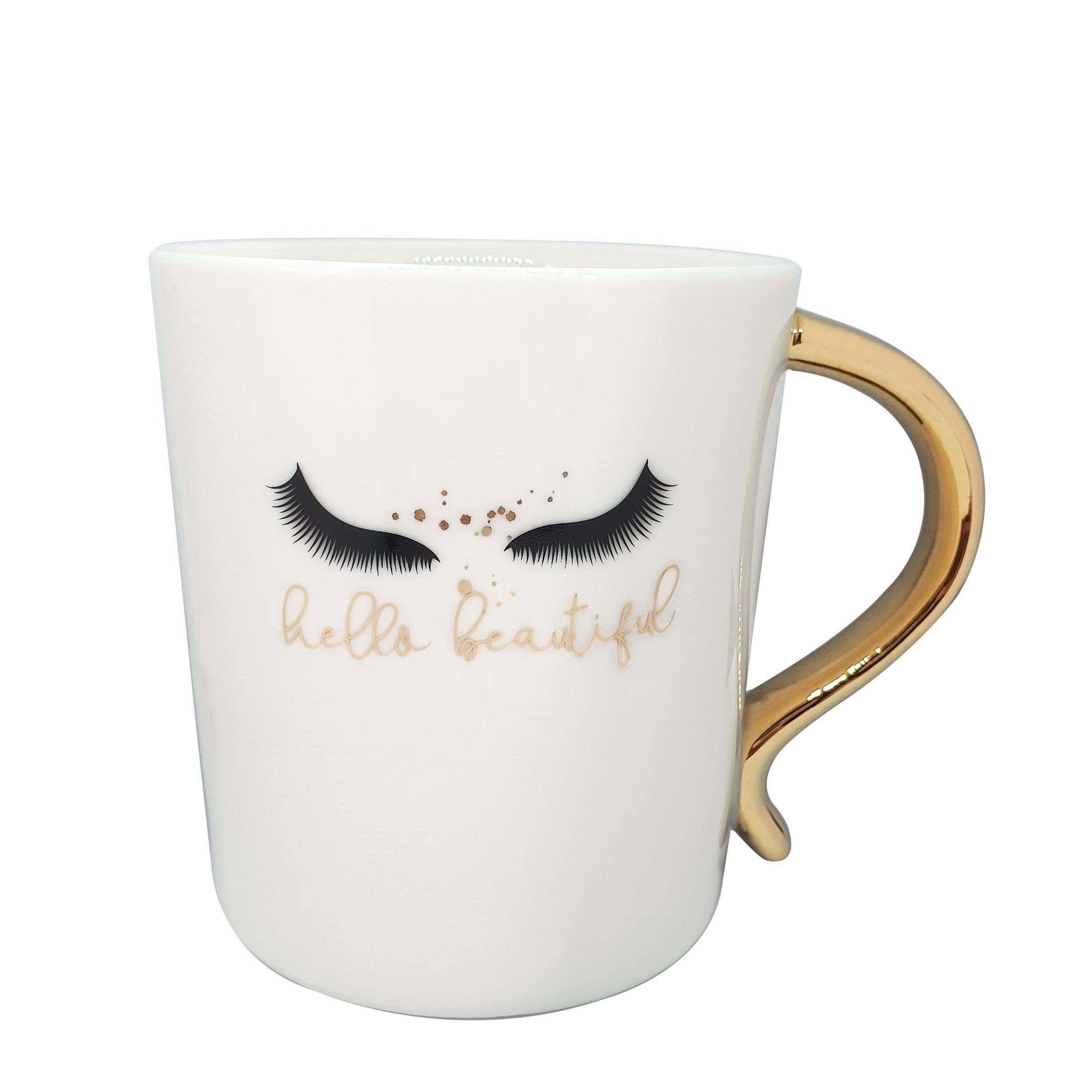 Tazza Mug In Ceramica Con Occhi Bianco Manico Oro 380ml – Dolci Pensieri Gift