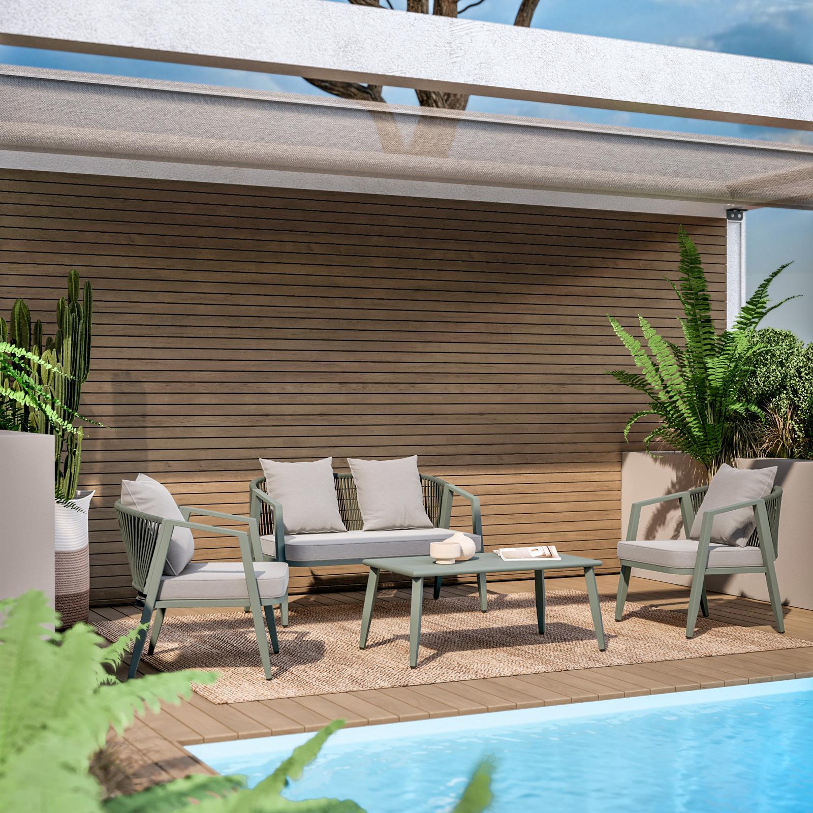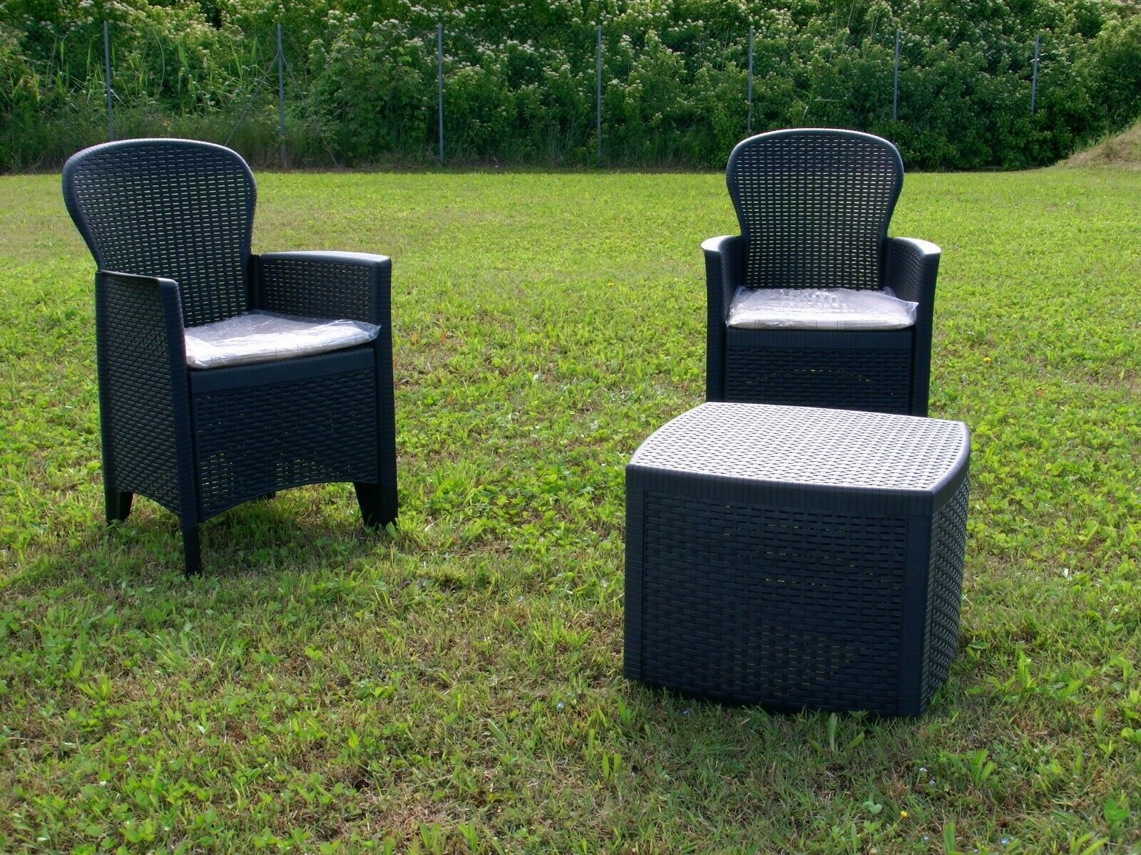 Salottino Da Esterno Made In Italy, Composto Da 2 Poltrone Ed 1