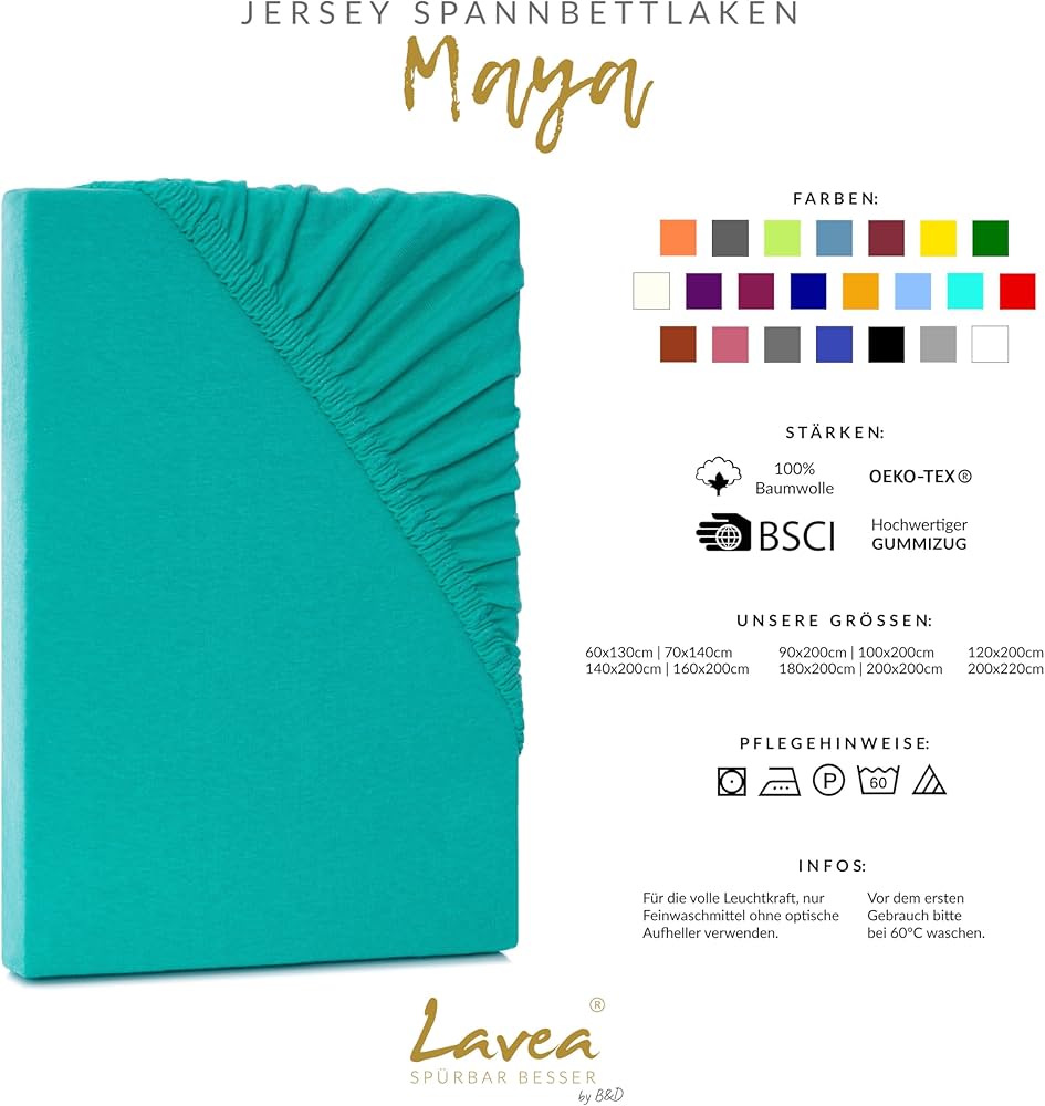 L'elastan ritorna alla forma originale dopo l'allungamento ed è quindi molto resistente agli strappi, indeformabile e antipiega. Testato contro la presenza di sostanze nocive secondo lo standard Öko-Tex 100 Piumino Estivo Matrimoniale Lenzuolo Con Angoli Elasticizzati In Jersey 100% Cotone, Per Materasso Da 100 X 50 Cm (blu Reale Lenzuolo Sotto Con Angoli Matrimoniale Estremamente traspirante, delicato sulla pelle e ad asciugatura rapida. Lavabile a 60°, adatto all'asciugatrice, non necessita di stiratura, facile da spostare, senza pieghe grazie all'elevata percentuale di elastan. Grazie all'elevata elasticità, il lenzuolo è ideale per materassi di larghezza da 180 a 200 cm e anche per lunghezze extra fino a 220 cm Fleuresse 1119 XXL - Lenzuolo con angoli elasticizzati in jersey (96% cotone e 4% elastan), con elastico, Ökotex 100, per materassi fino a 40 cm di altezza, 180 x 200 - 200 x 220 cm, colore: Petrolio Investirli in un prodotto premium e un sonno riposante è sicuro Con bordo elastico per una vestibilità ideale, adatto per materassi con un'altezza fino a 40 cm e quindi ideale anche per letti ad acqua o letti a molle. Il materiale è inoltre leggero, rimane completamente liscio e non forma noduli né pelucchi (anti pelucchi)