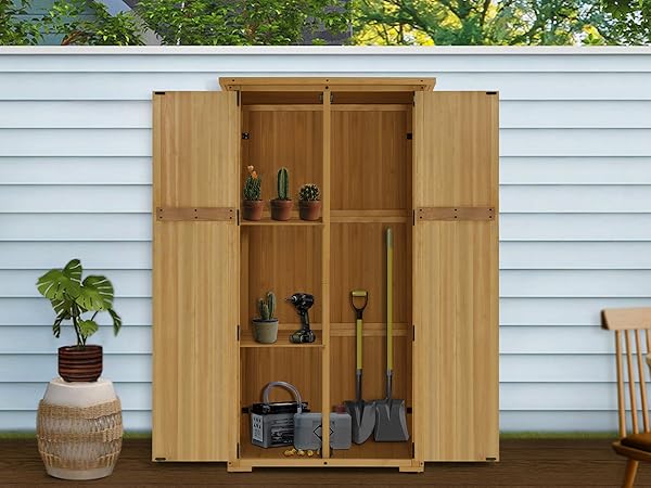 Armadio Da Esterno Metallo KOMFOTTEU Casetta Da Giardino In Legno, Capanno Per Attrezzi Per Esterno Con 4 Ripiani E 1 Armadi Da Esterno Visibilità e ventilazione: 2 finestre della capanna da giardino sono dotate di pannelli acrilici nella parte superiore per la visibilità e un design a lamelle nella parte inferiore per una circolazione ottimale dell'aria per ridurre l'umidità e gli odori Sicurezza e durevolezza: l'armadio esterno resistente alle intemperie ha 6 rinforzi metallici sulla porta, 2 chiusure antiribaltamento e 4 supporti per la stabilità; i poggiapiedi regolabili in altezza compensano le irregolarità del pavimento; una chiusura in metallo garantisce una chiusura sicura esterno, per giardino terrazzo, casetta per attrezzi con 2 ripiani mobili, 57×109×180 cm, 1152 (natura). 4,5 su 5 stelle 2. 1 offerta da 29999€29999 Eccellente protezione dagli agenti atmosferici: l'armadio da giardino è coperto da tetto in asfalto inclinato che impedisce ai raggi UV e l'accumulo di acqua; la grondaia allargata protegge la porta dalla pioggia, rendendo il capanno ideale per uso esterno