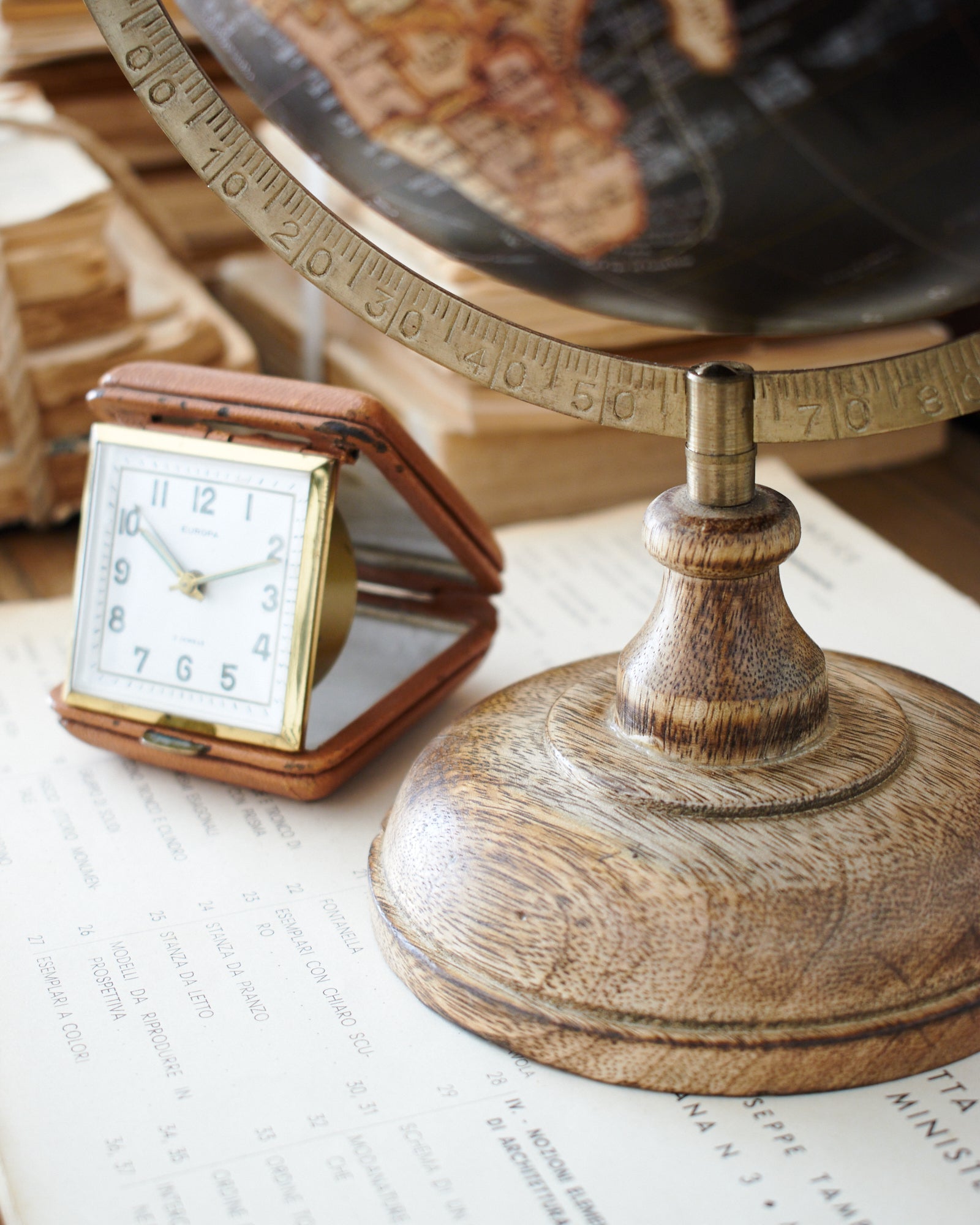 Mappamondo Con Piedistallo In Legno Girevole Sull'asse Decorazione Per Ambienti H 32 Cm