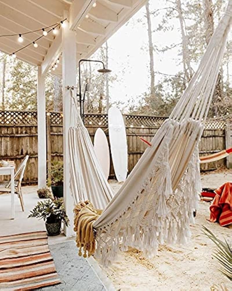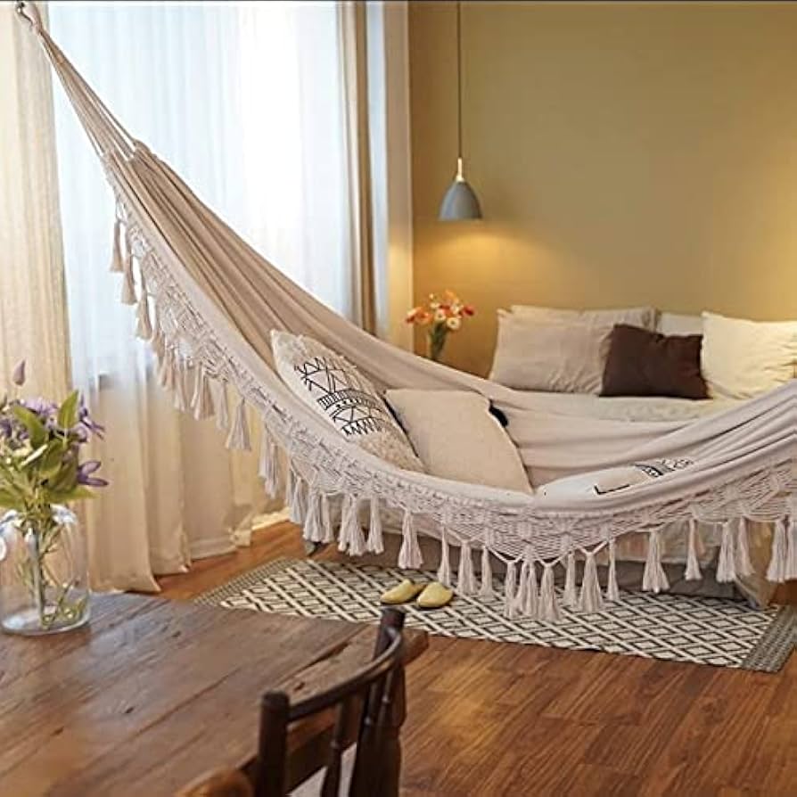 WSZGR Amache Con Frange In Macramè, Campeggio Amaca Da Giardino, Amaca Da Esterno In Cotone Amaca Balcone Amaca Con Nappe Fatte A Mano Amaca Doppia Giardino Dietro La Casa Spiaggia Terrazza
