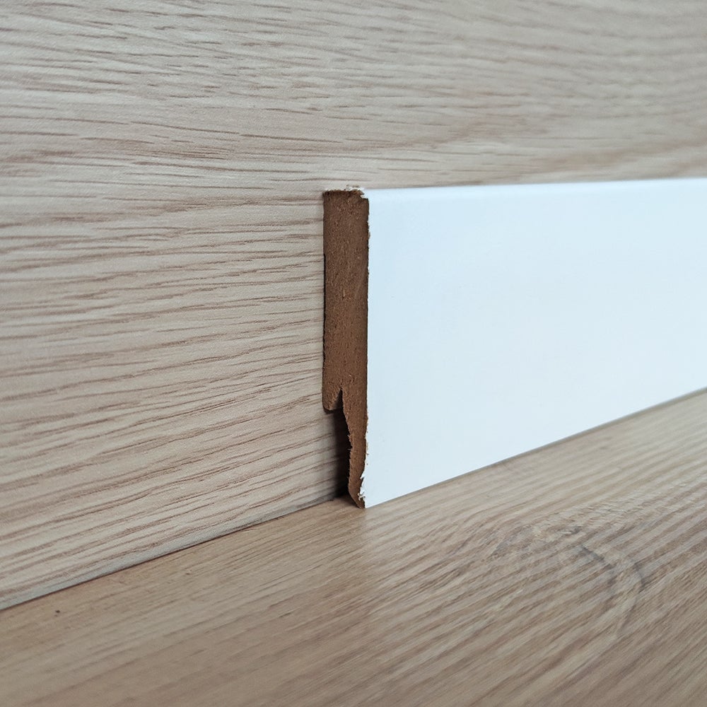 Onlywood Battiscopa Bianco In Mdf EVE Spessore 14 Mm X Altezza 75 Mm- Zoccolino Battiscopa Modello Liscio Squadrato - Asta Da 2,4 M