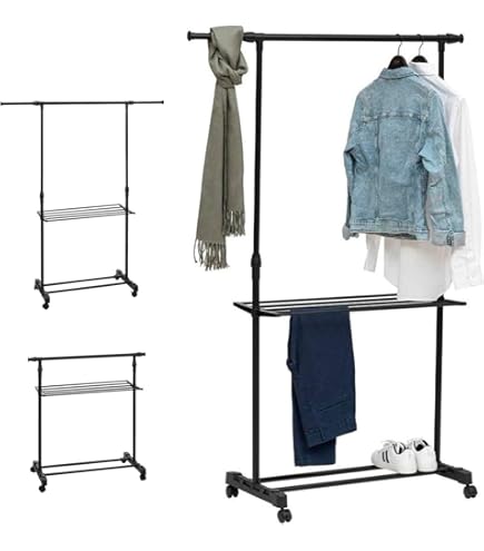 Il nostro stand appendiabiti telescopico è la soluzione ideale per chi cerca un'organizzazione versatile e dinamica. Grazie alle aste regolabili (da 82 a 140 cm) e all'altezza modificabile (da 88 a 160 cm), si adatta perfettamente alle tue esigenze, offrendo spazio per abiti lunghi e corti Dimensioni: 160x55x42 cm - Diametro tubo 1,5 cm circa Realizzato in: Metallo – Abs e Tessuto Appendiabiti Da Terra Stand Appendiabiti In Metallo | Acquisti Online Su EBay Da Parete Stand appendiabiti composto da un’asta e due ripiani Pratico stand appendi abiti in metallo ideale da utilizzare in casa, negozio, hotel e ovunque si desideri.