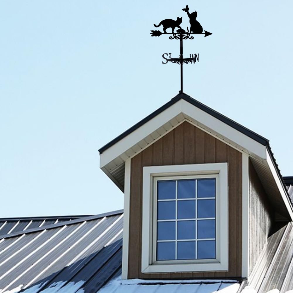 ZNEL Ornamento Per Gatti Segnavento In Metallo, Banderuola Simpatico Gatto A Forma Di Decorazione Per Giardino Sul Tetto, Indicatore Di Direzione Del Vento,Cat~c