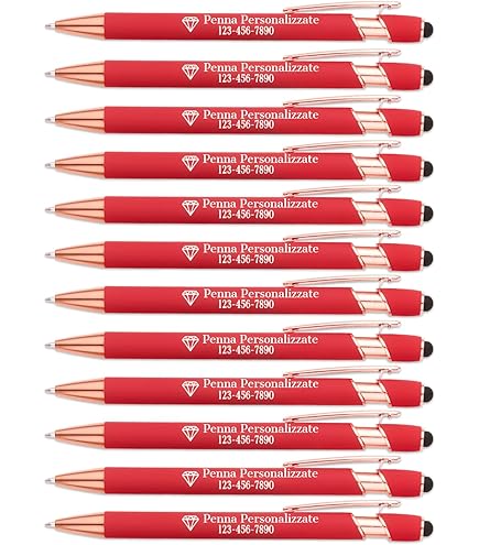 Un compagno ideale per tutti coloro che apprezzano la qualità e la funzionalità, sia come regalo per gli insegnanti, sia per scopi promozionali o per uso privato. Acquista una penna personalizzata , con il servizio incisione puoi inserire e incidere un nome , una frase o una dedica speciale. ... Scegli una penna e personalizza con nome , una data o un breve messaggio speciale. Potrai vedere l'anteprima e acquistare Niente più impronte inutili sul display! Le nostre penne a sfera personalizzate consentono l'incisione laser di testi individuali. Che si tratti di un nome, di una data speciale o di una citazione significativa, personalizzate questa biro di alta qualità con inchiostro nero per farne il vostro accessorio personale. L'incisione laser rimane chiara e duratura per molto tempo. Che si tratti di colleghi che cambiano lavoro, insegnanti o amici e familiari, questo set di biro non è solo pratico, ma anche un sentito segno di apprezzamento. Un'ottima aggiunta a qualsiasi collezione di cancelleria o penne. Alta qualità e durata: le nostre penne a sfera sono realizzate con materiali di alta qualità e resistono quindi all'uso quotidiano. La combinazione perfetta di una biro di alta qualità e di uno stilo indispensabile per gli utenti moderni. Regalo Anniversario Matrimonio Penne Personalizzate In Metallo Con Incisione Del Nome Perfette Penna Personalizzata Con Incisione A scuola, in ufficio o in viaggio, questa biro è sempre al vostro fianco. Navigate senza fatica tra le app, prendete appunti o disegnate sul vostro dispositivo.