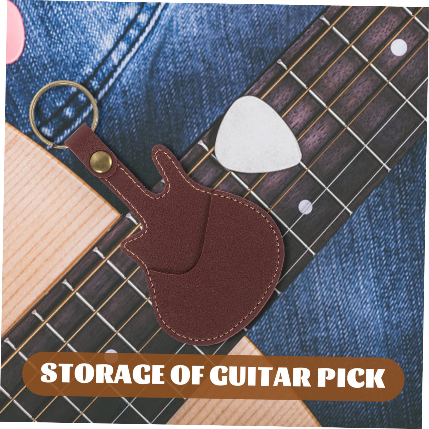 Custodia Per Plettro Per Chitarra, In Pelle, Con Portachiavi, In Pelle