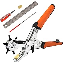 Con la chiave nella parte inferiore del perforatore, è possibile chiudere facilmente lo strumento quando non in uso, rendendolo più piccolo e più comodo da riporre Facile da usare e riporre: le nostre pinze rotanti possono essere regolate con una rotazione di 360°, seguendo le istruzioni sulla freccia sul rullo per cambiare i fori. Pinza Per Forare Cinture Perforatrice Per Cintura Per Pelle | Punzone In Pelle Per Impieghi Gravosi Con 6 Fori Solidi,Strumento Per Perforare La Pelle, Perforatore Per Cintura Per Cinture, Perforatore Per Cintura Per Artigian Punzonatrice Per Cinture Professionali WISEUP Punzonatrice per cintura, set di pinze perforatrici rotanti, resistenti, 6 diverse dimensioni, per pelle, cinture, collari per cani, borse, strumenti per punzonatura fai da te Il design a doppia leva aiuta a risparmiare energia, tempo e migliora l'efficienza del lavoro Che tu sia un appassionato di fai da te o un professionista, il nostro strumento per punzonatura in pelle soddisferà tutte le tue esigenze di punzonatura Materiali di alta qualità: il nostro set di pinze per punzonatura WISEUP è realizzato in acciaio elettrolitico, garantendo un'elevata durezza e una buona resistenza. La superficie metallica è verniciata per prevenire l'ossidazione, rendendola robusta e resistente all'usura per un uso a lungo termine Ampia gamma di applicazioni: questo perforatore per pelle a 6 fori è versatile e adatto per vari materiali come cinture, pelle, tessuti, borse, carte e altro ancora.