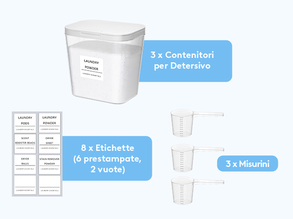 Lifewit Set Di 3 Contenitore Detersivo Polvere, Dispenser Detersivo Lavatrice In Plastica, Dosatore Detersivo Lavatrice Con Coperchio Con Etichette E Cucchiai Per Bombe Da Bagno, Cialde Per Bucato : Amazon.it: Salute E
