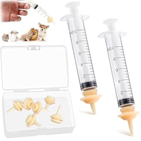 Versatile: questo set di alimentazione non è adatto solo per gattini, ma anche per altri piccoli animali domestici come cuccioli, conigli e scoiattoli. Offre tutto il necessario per un'alimentazione sicura ed efficace. Il pacchetto include: 2 siringhe da 1 ml, 2 siringhe da 5 ml, 6 tettarelle originali, 4 tappi. La tettarella originale per animali domestici è progettata per scoiattoli, conigli, pipistrelli, conigli, scoiattoli rossi, scoiattoli volanti, cuccioli appena Vermifugo Per Gatti Mayoii Mini Tettarella In Silicone Con Siringa, Siringa Per L'alimentazione Di Animali Domestici Con Capezzolo Per Gattini, Cuccioli, Gatti, Conigli, Piccoli Animali (confezione Da 6 Ciuccio Per Gatti È un accessorio versatile per tutti gli amanti degli animali domestici e custodi. Fornisce una soluzione pratica e necessaria per nutrire gli animali domestici appena nati e garantisce la loro migliore cura possibile. Materiali riutilizzabili e durevoli: tutti i componenti di questo set sono realizzati con materiali riutilizzabili di alta qualità. Le siringhe consentono un'alimentazione precisa e controllata per evitare sovralimentazione. Set completo di alimentazione per gattini: il set di alimenti per biberon Hebterrka contiene 6 tettarelle e 2 siringhe per l'alimentazione, appositamente progettate per le esigenze dei gattini appena nati.