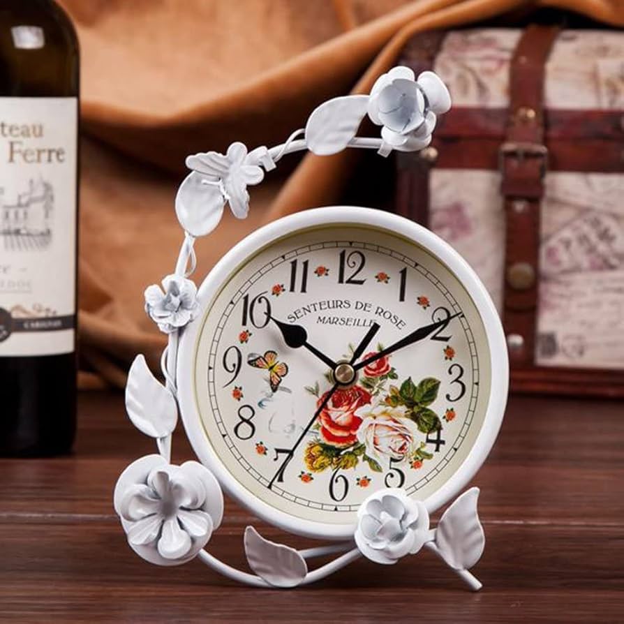 KiGoing Sveglia Da Comodino Orologio In Stile Europeo,Orologio In Ferro Battuto Orologio Da Tavolo In Ferro Battuto Con Numeri Romani, Orologio Da Tavolo Al Quarzo Vintage
