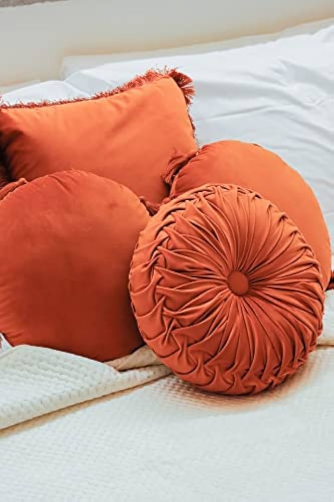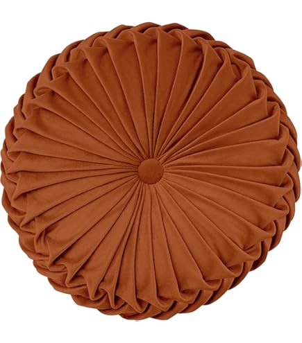 NatureMan Cuscino Rotondo Per Divano Da 34,8 Cm, In Velluto Di Colore Puro, Cuscino Rotondo Plissettato, Cuscino A Zucca, Adatto Per Decorazione Di Casa Letto Auto (giallo