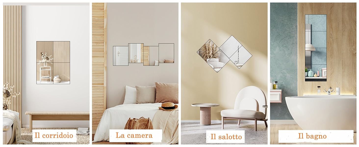 Materiale leggero: Gli specchi realizzati in materiale PS sono più leggeri dei tradizionali specchi in vetro, facili da portare e installare. Inoltre, il materiale PS ha una buona elasticità e resistenza agli urti, non è facile da rompere, ed è più sicuro da usare. Compra Vasemouh Specchio da Parete in PS, Specchio Adesivo Antideflagerante per Camera da Letto, Soggiorno, Bagno, Specchio di 35.6x28 x0.2 cm,16 Pezzi. SPEDIZIONE GRATUITA su ordini idonei L'effetto riflettente è nitido, utilizzabile per l'abbigliamento quotidiano, il trucco o l'allenamento del corpo. Il retro del specchio è equipaggiato con super adesivo, gli utenti possono facilmente attaccarlo alla parete o a qualsiasi superficie piana, senza bisogno di utensili professionali o complessi passaggi di installazio Design alla moda: Questo set di specchi ha uno stile di design moderno e semplice, con bordi lisci, e il design senza cornice rende l'effetto visivo più ampio. Installazione semplice: Il retro del specchio è equipaggiato con super adesivo, gli utenti possono facilmente attaccarlo alla parete o a qualsiasi superficie piana, senza bisogno di utensili professionali o complessi passaggi di installazione. Descrizione prodotto Vasemouh Specchio da Parete, Specchio Adesivo 35.6x28 x0.2 cm,16 Pezzi 1 DETTAGLIO 2 IN CAMERA 3 IN BAGNO Questa dimensione è sia conveniente per l'uso individuale che per l'assemblaggio combinato. Specchio Da Parete Adesivo Vasemouh Specchio Da Parete In Vetro Con Il Bordo Lucidato, Specchio Bordi Per Specchio Adesivi