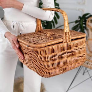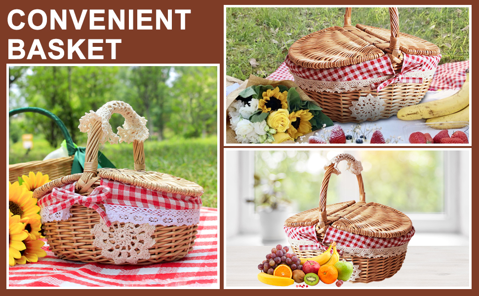 Come sono i nostri cestini da picnic : qualità e organizzazione. I nostri cestini da picnic sono realizzati in vimini e, dentro, contengono tutto il necessario per mangiare all'aperto, Piatti, posate, bicchieri e tutti gli accessori che possono essere uti Ampiamente Utilizzato: Adatto per feste di picnic, stoccaggio domestico e verdure, grande capacità, può memorizzare tutti i tipi di cibo, vino, godere di un tempo felice picnic Design a Doppio Coperchio: Il coperchio in legno a doppia entrata può essere aperto a metà per inserire o estrarre cibo, frutta o altri oggetti, molto pratico e conveniente Pic Nic Vintage Cestino Da Picnic In Vimini Vintage Con Manici, Inclusi Accessori Da Picnic - Italia Cestino Per Picnic Dimensioni del Prodotto: 25 x 18 x 14 cm (altezza del cestino 14 cm + altezza della maniglia 12 cm), grande capacità per contenere tutti i vostri cibi da picnic preferiti Materiale di Alta Qualità: Realizzato in solido vimini con un comodo tessuto di cotone e lino, che rende il cestino robusto e durevole, in grado di proteggere le vostre scorte da picnic