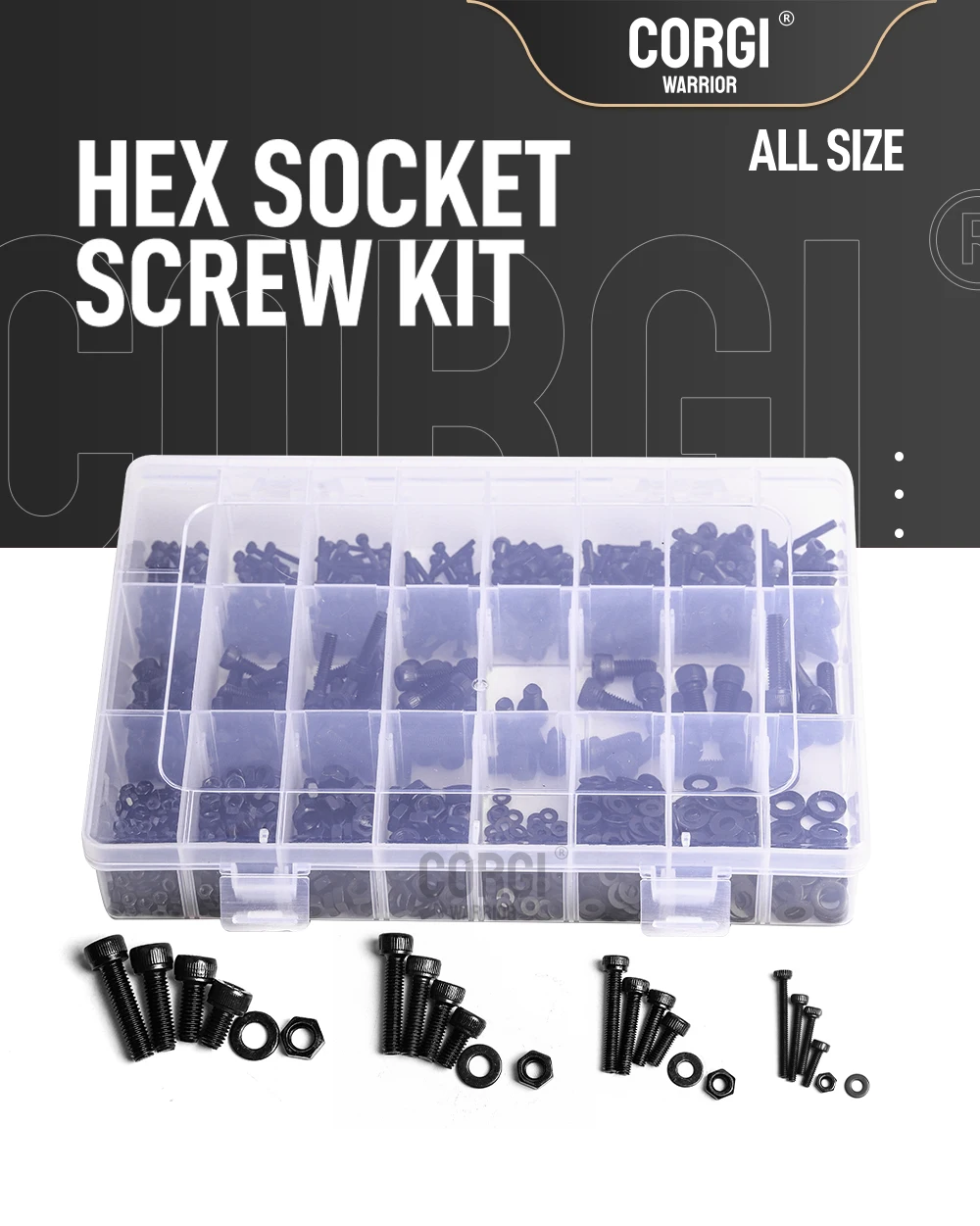 K Vi A Testa Cilindrica Con Esagono Incassato Nero Fino A 720 M2 M2.5 M3 M4 M5 M6 M8 M10 Set Di Assortimento Di Vi A Brugola DIN912 In Acciaio 12.9