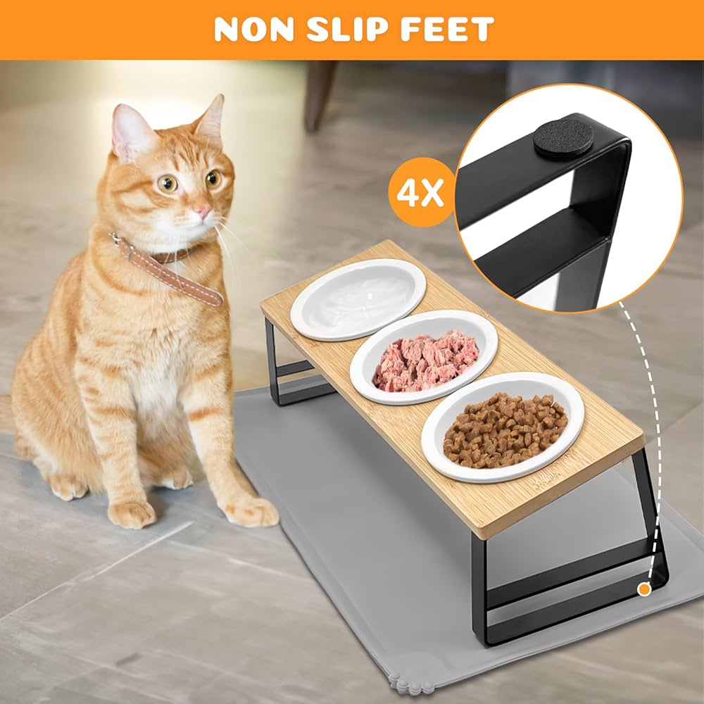 Ciotole Per Gatti Rialzate, Mezzar 15° Inclinata Ciotola Per Gatti E Cani In Ceramica,3 Ciotola Per Gatto Cane Ciotole Rialzata Con Tappetino Antiscivolo Per Cibo Acqua