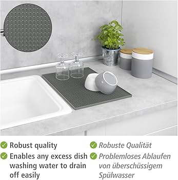 Wenko 54699100 Tappetino Scolapiatti Neli, Superficie Inclinata E Rigata Per Un Deflusso Ottimale Dellacqua Grigio Raffinato 430037033