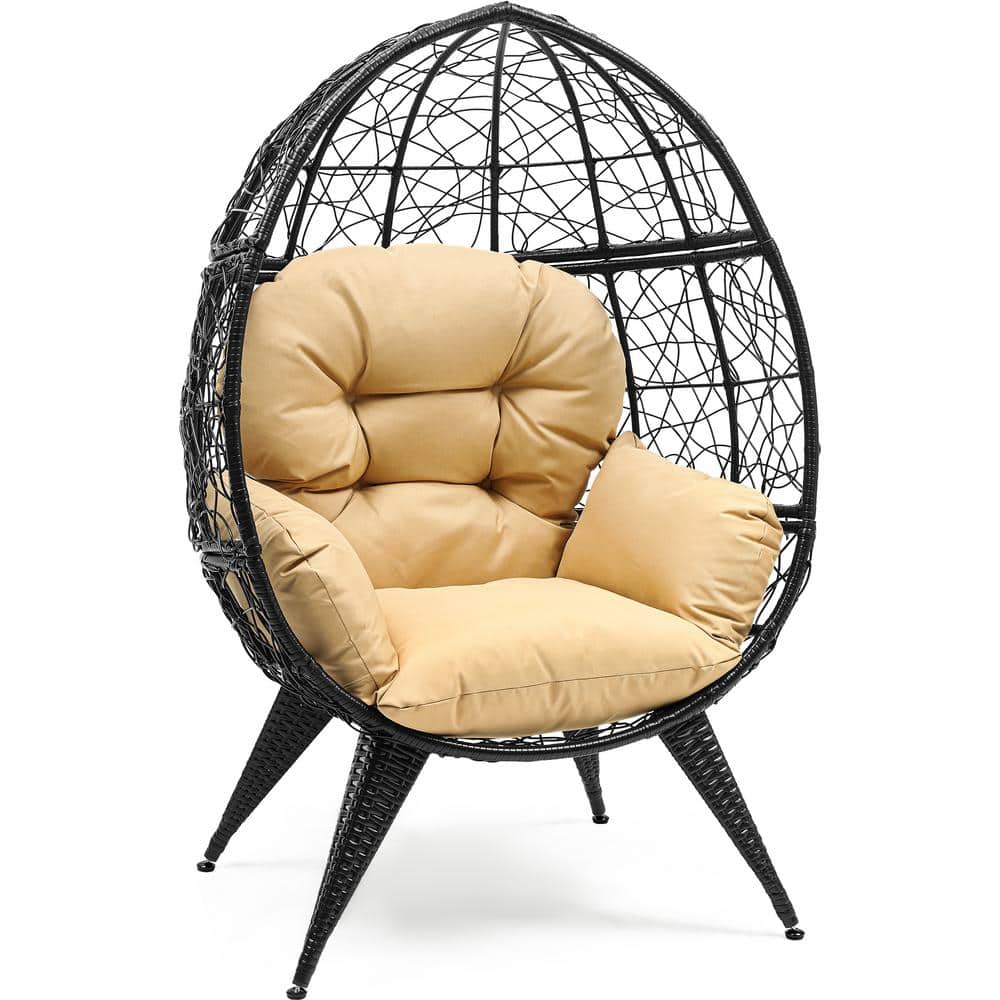 UPHA Oversized Wicker Egg Chair Indoor Outdoor Large Lounge Chair With Red Cushions Jdy Red