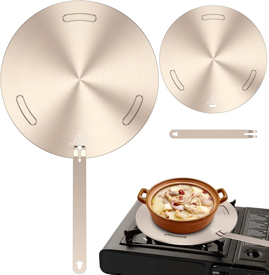 Versatile: Le piastre di cottura per mantenere il cibo caldo sono un robusto convertitore per piano cottura a induzione in acciaio inox ed è molto adatto per caffettiera, caffettiera, scaldabagro, teiera, pentole per latte e altri piccoli utensili da cucina. Un investimento intelligente per la tua cucina! In questo modo manterrà la freschezza dei vostri alimenti e le vostre padelle saranno protette dallo scolorimento. Istruzioni per l'uso: Piastra termoconduttiva, stufa antiaderente, stufa elettromagnetica, fiamma libera, universale. È vietata la combustione a vuoto Goditi una cottura uniforme senza compromessi! Questo manico spesso ti consente di portare la padella senza preoccupazioni. Adattatore Per Induzione Adattatore A Induzione, 28cm Piastra Per Induzione/Diffusore Caffettiera Induzione Materiali di alta qualità e durevoli: realizzato in lega di alluminio resistente, la piastra adattatore a induzione protegge il fondo delle pentole dai danni e garantisce un uso a lungo termine. Universale per piccoli elettrodomestici: con un diametro di 26 cm e una piastra ad anello rimovibile, la piastra adattatore per fornello a induzione è ideale per caffettiere, macchine da caffè, teiere e scaldaberro. Perfetto per una cottura precisa e uno scongelamento che fa risparmiare tempo. Perfetto per mantenere le zuppe calde in inverno o preparare piatti a cottura lenta, sostenibile e pratica Si adatta perfettamente a tutti i piccoli elettrodomestici da cucina e amplia la vostra cucina.