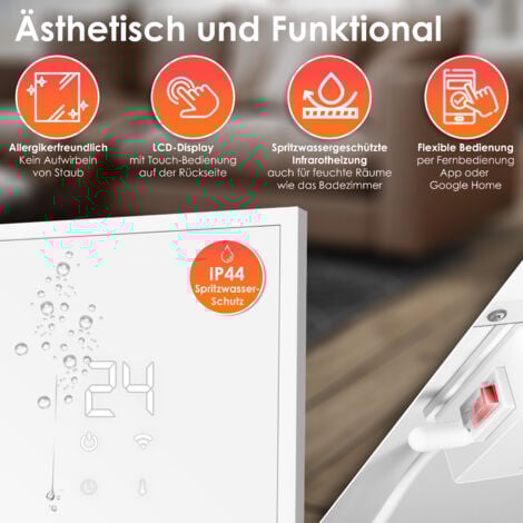 KESSER® Riscaldatore A Infrarossi 700W, Riscaldatore In Alluminio, 2in1 A Pavimento E A Parete, Rilevamento Finestra Aperta + Telecomando E App, Termostato, Infrarossi, Pannello Riscaldante, Bianco